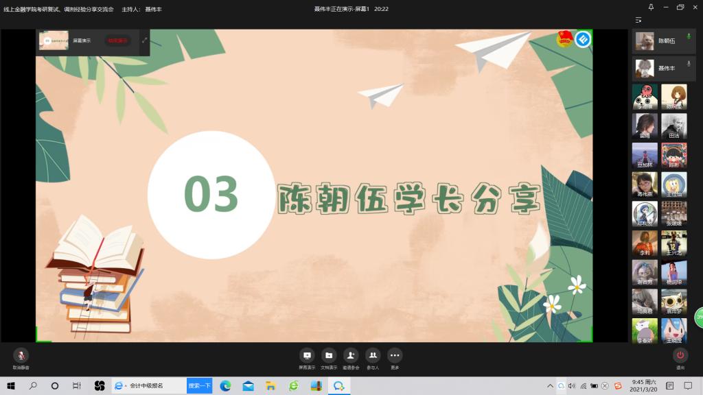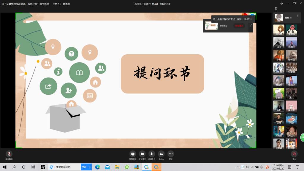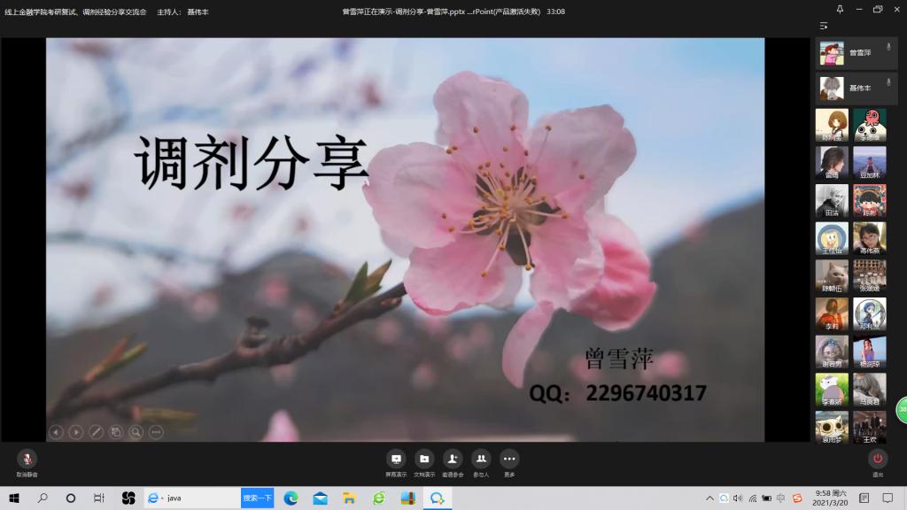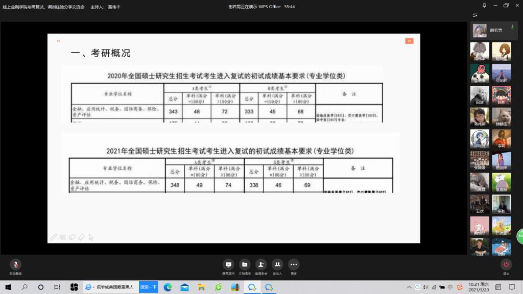 3月20日上午9:30,beat365在线唯一官网成功举行了“beat365在线唯一官网考研复试、调剂经验分享”线上交流会。此次交流会邀请了2020届考研成功的五位校友:杨润琼、陈朝伍、曾雪萍、刘柯岚、谢若男来分享关于复试和调剂成功的相关经验,为同学们答疑解惑。beat365在线唯一官网党委书记、副院长王建明,党委副书记、纪委书记余新出席了本次交流会。