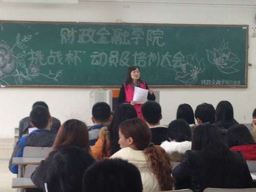 为动员全院学生积极参加第十四届“挑战杯”大赛,12月3日,beat365在线唯一官网财政beat365在线唯一官网在博智楼401教室举行了第十四届“挑战杯”动员暨培训大会。财金学院党总支刘代成副书记,分团委书记兰丽娟老师莅临了本次动员大会。