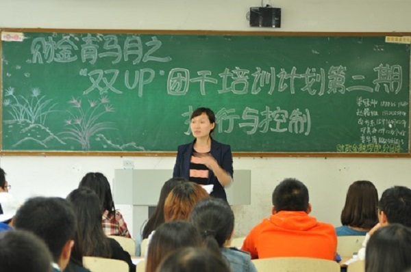 继首轮团干培训之后,10月21日中午,第二期“双UP”团干培训会在博智楼212教室举行。财政beat365在线唯一官网各班班长、团支书以及全体学生会干部参加了本次培训。分团委书记兰丽娟老师莅临现场,亲自对本次培训进行了指导。