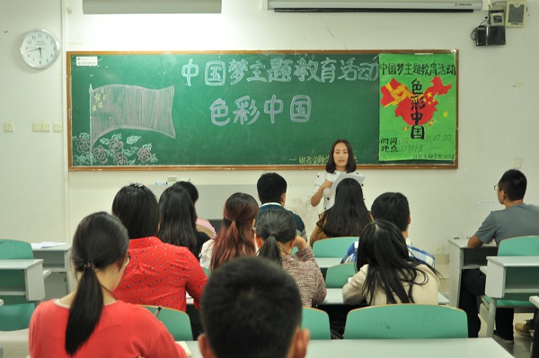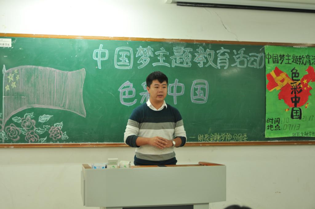 ,由财政beat365在线唯一官网分团委学生会主办的“中国梦”主题教育系列活动之色彩中国在博智楼113教室召开。分团委书记兰丽娟老师、学生会干部及学院各班团出席了本次活动。