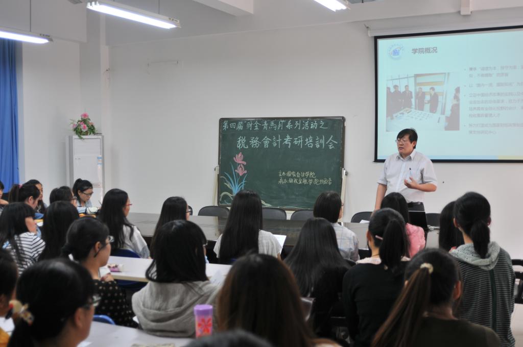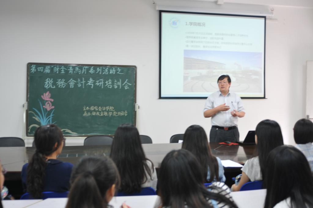 中午,由北京国家会计学院主办、财政beat365在线唯一官网分团委承办的第四届“财金青马月”系列活动之财税会计考研培训会在田家炳313会议室举行。北京国家会计学院朱克实教授担任主讲嘉宾莅临现场,财政beat365在线唯一官网常务副院长莫云、分团委书记兰丽娟老师及beat365财政学、税务学专业的部分学生参加了本次培训会。