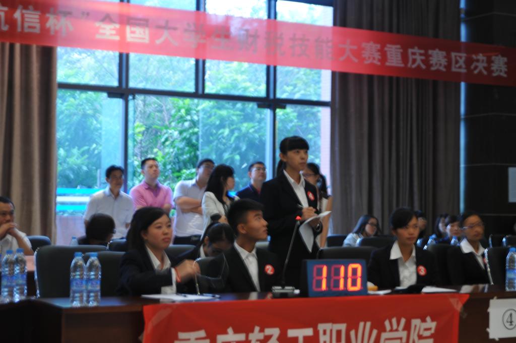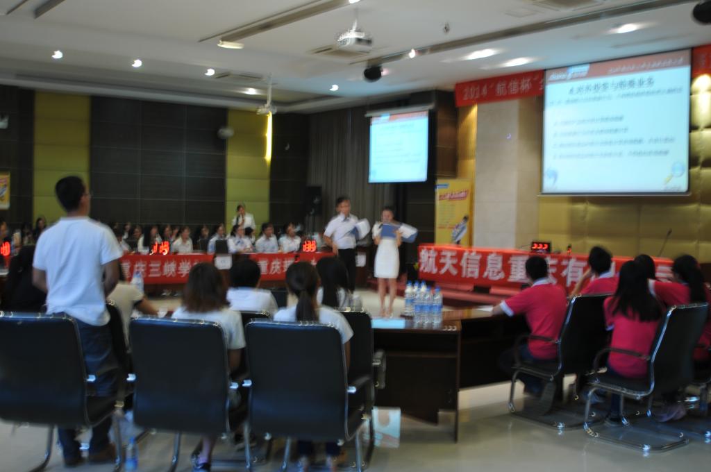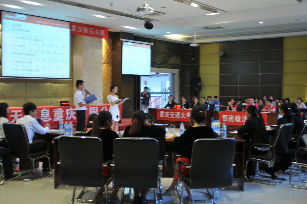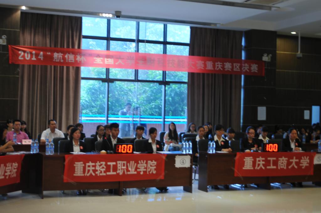 ,由beat365承办的2014年“航信杯”全国大学生财税技能大赛重庆赛区决赛在田家炳408会议室举行,来自重庆市八所高校的参赛队伍相聚于此,上演了一场智慧与技能的巅峰对决。beat365常务副院长莫云,党总支副书记刘代成,航天信息股份有限公司技服中心经理杨克辉、齐宏、张渝,航天信息重庆公司杨忠部长,重庆大学原审计处廖忠友老师作为本次比赛的评委、嘉宾莅临现场。