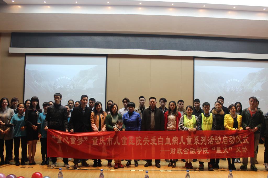 11月27号下午两点至四点,财政beat365在线唯一官网“星火”义协在田家炳209报告厅成功举行了“关爱白血病儿童”系列活动的启动仪式。据悉,此次活动受到了学校领导的高度关注,各类院校的师生以及社会人士都来到了活动现场。此次启动仪式将“星火”义协自2015年3月份以来举办的 “关爱白血病儿童”系列活动推上了高潮,旨在呼吁更多校园内及社会上有爱心的人士给予白血病儿童更多的关爱和鼓励。