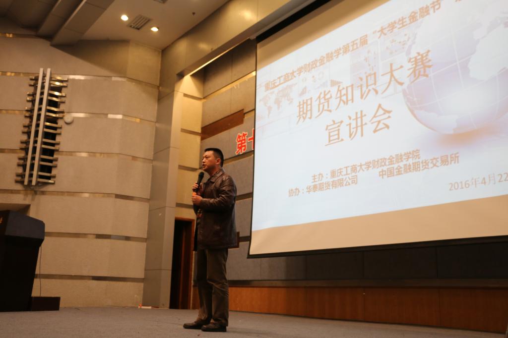 大赛秉持着培育金融行业后备人才,促进高校将知识竞赛与学科建设挂钩,普及金融衍生品知识的目标,为全国大学生提供了金融及衍生品知识交流学习的良好平台。宣讲会伊始,刘书记在致辞中表达了对相关专业公司的感谢以及对参赛选手们的殷切希望。随后,对于参赛细则问题,华泰期货代表陆彦为同学们详细解说了知识竞赛的参赛要求及方式。随后,财金学院余红霞博士对整个大赛的流程与时间做了更进一步的将对。最后,周明先生通过生动有趣的互动,系统阐释了期货知识,帮助同学们夯实基础;“阳春白雪,下里巴人”,沈发鹏先生以诙谐幽默的语言向同学们介绍了期权知识及股指期权应用。现场提问环节中,与会同学踊跃提问,大家将有关金融及衍生品知识的问题与专业人士探讨,宝贵的机会让同学们收益良多。