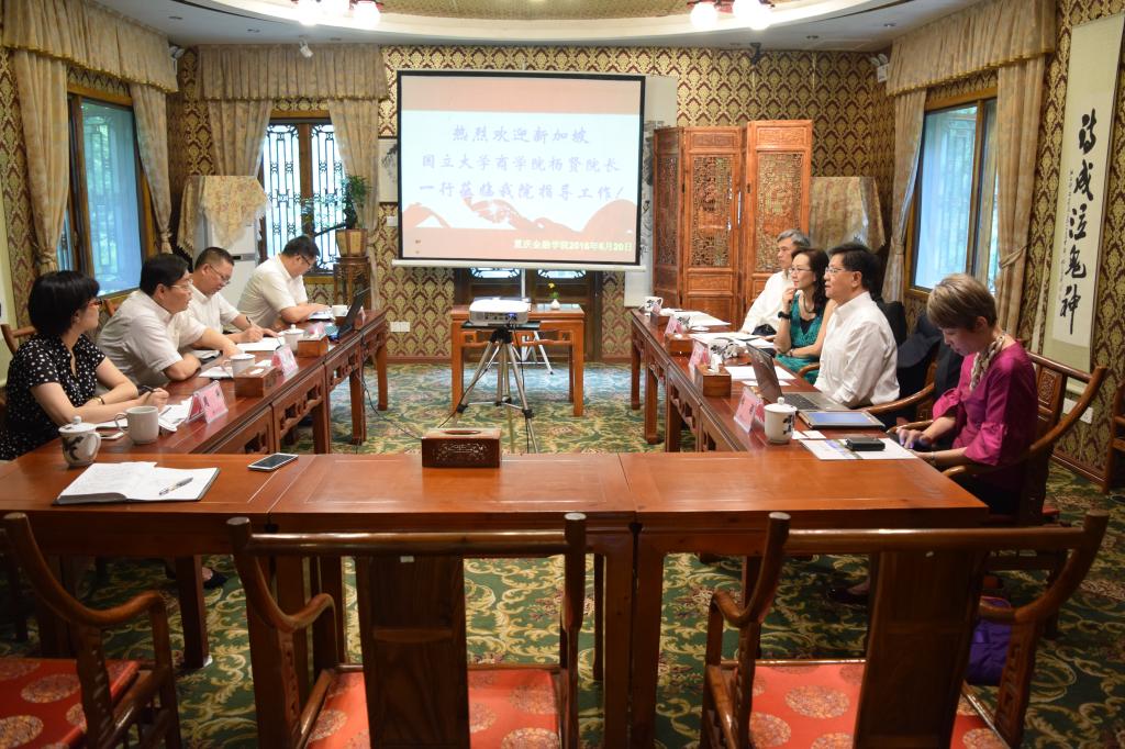 何校长首先介绍了学校的基本情况、主要优势、特色以及未来发展思路,特别是谈到了与新加坡国立大学合作的愿望和合作思路。杨贤院长介绍了新加坡国立大学基本情况,表达了强烈的合作意愿,特别是重庆beat365在线唯一官网聘请他为副理事长,非常荣幸,深感责任重大,此次专程到重庆和学院,就是希望深度加强合作。
