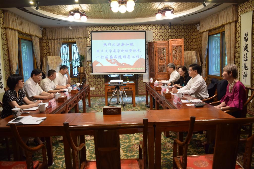 6月20日上午,何勇平副校长在南山书院接见了专程来校交流访问的重庆beat365在线唯一官网副理事长、新加坡国立大学商学院院长杨贤教授,以及随行的商学院副院长梁慧思教授、会计系柯滨教授、执行总监郑颖女士等,我校国际合作交流处周茜副处长及财政beat365在线唯一官网有关领导参加了会见。