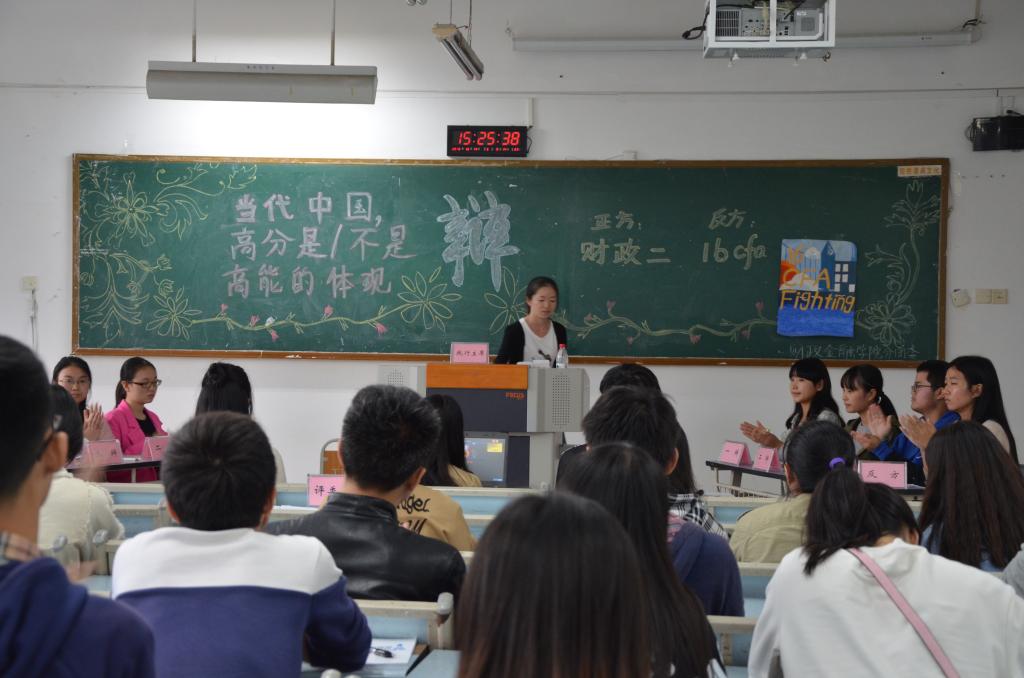 财政beat365在线唯一官网第十五届“财金杯”辩论赛初赛于10月14日在博智楼403-405教室举行。来自财金学院的十八支队伍展开激烈角逐,财金学院分团委学生会主席团、财金学院辩论队代表团作为评委嘉宾出席本次比赛。