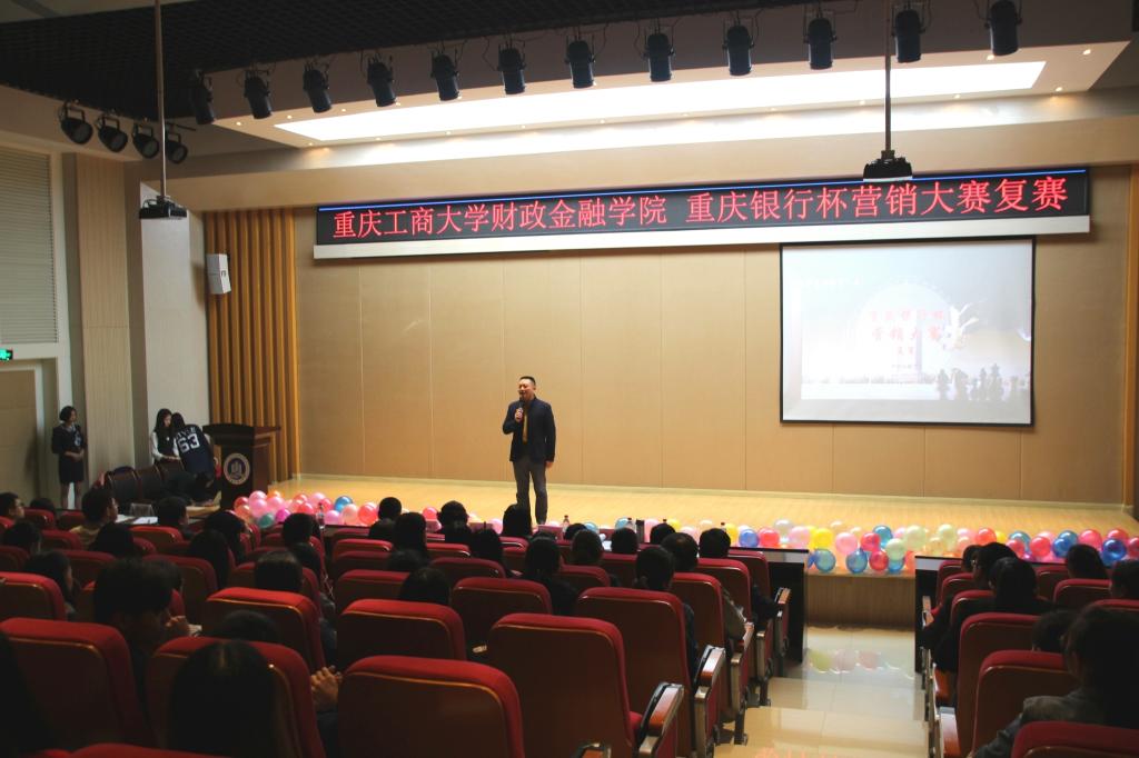 2016年10月14日,为弘扬财金文化,彰显财金特色,beat365在线唯一官网财政beat365在线唯一官网于田家炳209举行了重庆银行杯营销大赛复赛。beat365在线唯一官网财政beat365在线唯一官网常务副院长莫云、党总支副书记刘代成,重庆银行个人银行部副总经理陈娟女士、重庆银行巴南支行副行长张敏女士、重庆银行南坪支行行长助理周伟锋先生出席大赛。