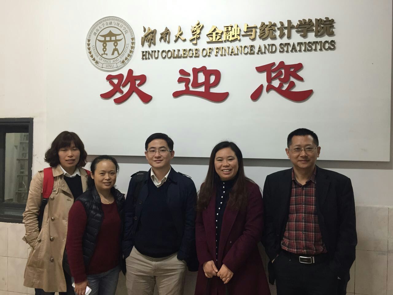 研讨会结束后,由金融系主任许世琴副教授带队,前往湖南大学金融与统计学院进行了调研,就金融人才培养模式改革、特色专业建设、在线课程建设、课程考核等方面的问题向湖南大学取经,湖南大学金融统计学院的金融学是国家级特色专业、金融学课程是国家级精品资源共享课程,在线课程国际金融的选课人数在10万人以上,有较多的成功做法值得我们学习和借鉴。