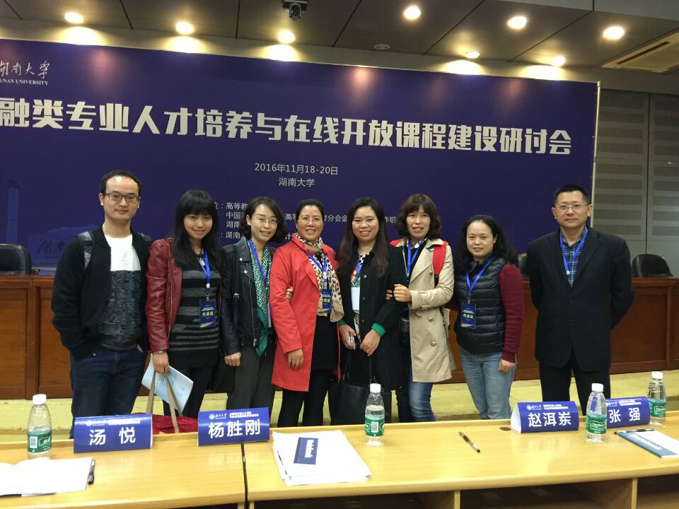 为了深入贯彻《教育部关于加强高等学校在线开放课程建设应用与管理的意见》(教高[2015]3号)精神,探究创新“互联网+”背景下的人才培养模式,推动适合我国国情的金融学类专业在线开放课程建设,整合优质教育资源和技术资源,助推教育教学改革,由高等教育出版社、中国高等教育学会高等财经教育分会金融学专业协作组主办,湖南大学金融与统计学院承办的“金融学类专业人才培养与在线开放课程建设”研讨会,于2016年11月18-20日在湖南大学召开,来自全国80余所高校、300余位教师代表参加了会议,我校财政beat365在线唯一官网指派出了金融系专业教师和教学管理人员共11人参加交流和学习。