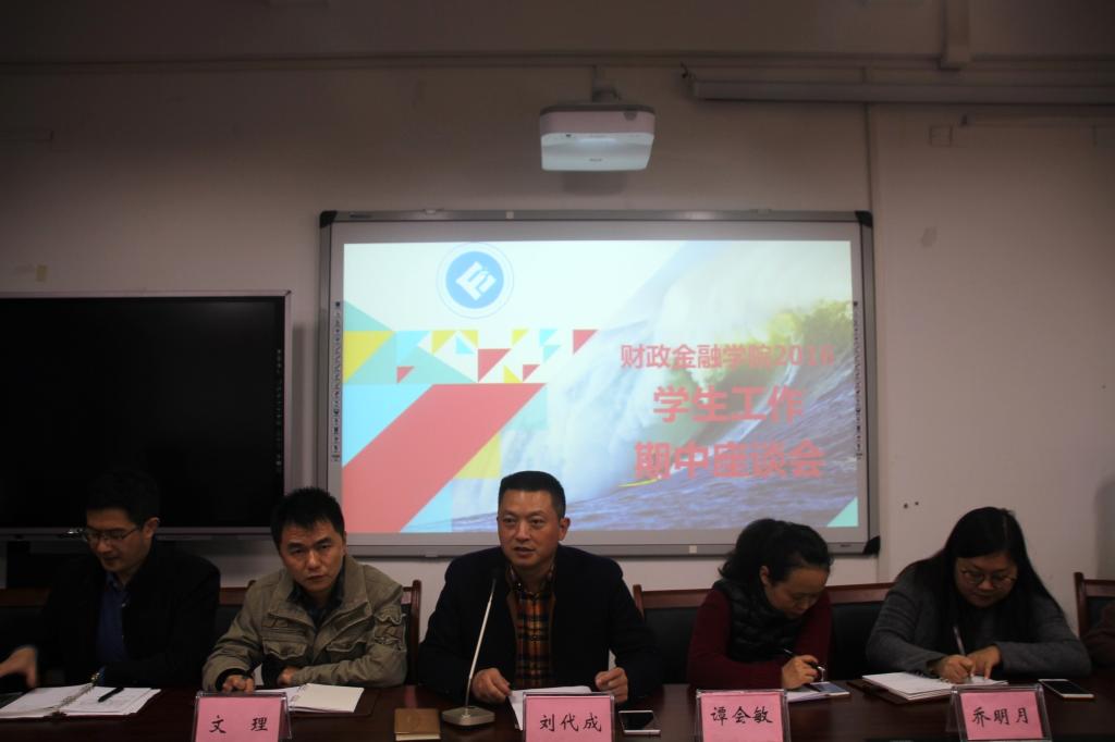 2016年11月22日中午,财政beat365在线唯一官网于田家炳313会议室召开了2016年学生工作期中座谈会,财金学院总党支副书记刘代成、学团办老师、各班代表参加座谈会。