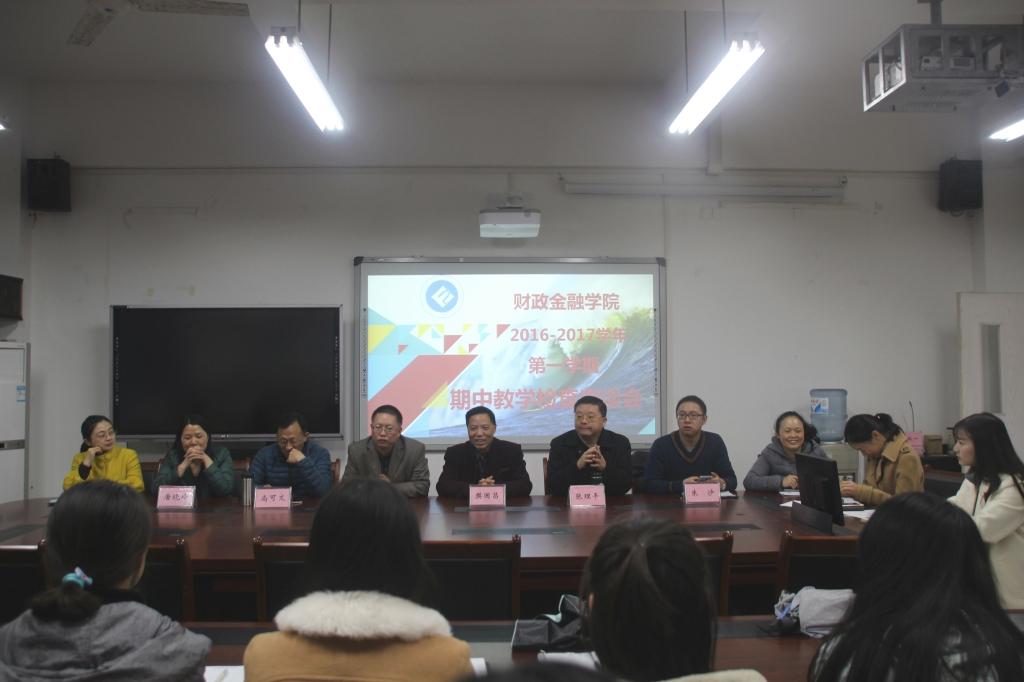 2016年11月23日中午,于田家炳313会议室召开了财政beat365在线唯一官网2016-2017学年第一学期期中教学检查座谈会。财政beat365在线唯一官网常务副院长莫云教授,校督导专家樊国昌教授、尚可文教授和院督导专家张理平老师、唐晓玲老师、周渊老师、朱沙老师及学院相关负责老师与各班级学习委员共同对学院上半学期教学工作做了座谈及工作总结。