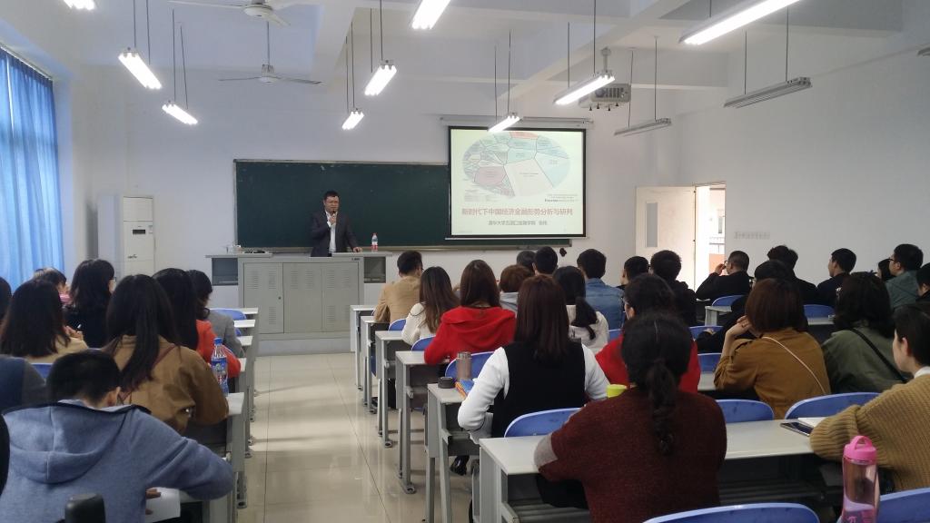 2018年3月26日下午2点,清华大学五道口beat365在线唯一官网张伟博士在田家炳教学楼50306教室,以新时代下中国经济金融形势分析与研判为题,作了一场内容丰富的前沿讲座。讲座由学院副院长曾胜教授主持,财税系副主任朱沙、金融工程系主任张理平等老师和同学们一同聆听了讲座。