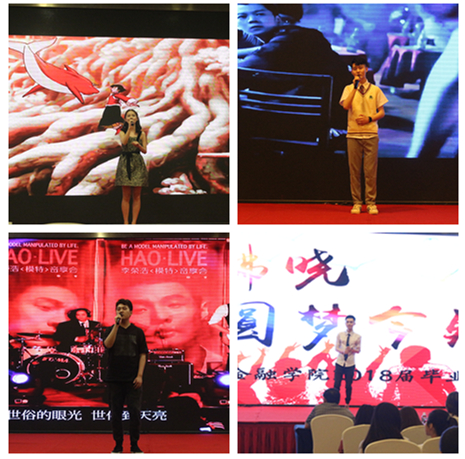 5月16日19:00,财政beat365在线唯一官网“青春拂晓,圆梦今朝”2018届毕业晚会在学豪酒店3楼宴会厅隆重举行。财政beat365在线唯一官网党委书记杨萍、院长刁孝华、副院长王兰、党委副书记黄谦、各系主任、部分教师代表以及2018届全体毕业生出席了本次晚会。