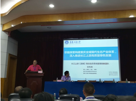 此次研讨会上,文传浩教授作了题为《积极探索构建重庆全域现代生态产业体系,深入推进长江上游高质量绿色发展》的主旨演讲。首先从“共抓大保护、不搞大开发”、“生态优先、绿色发展”理念出发,阐述了现代“生态产业”实际上是一种融合全空间、全领域、全产业、全过程、全要素特征的产业。然后进一步结合目前重庆市发展现状,对重庆市“现代化生态产业”体系的构建提出了初步设想。最后文传浩教授认为,未来重庆全域应坚定不移走绿色发展道路,率先建设为全国全域绿色发展试验区,成为长江经济带生态文明先行示范带的典范区。