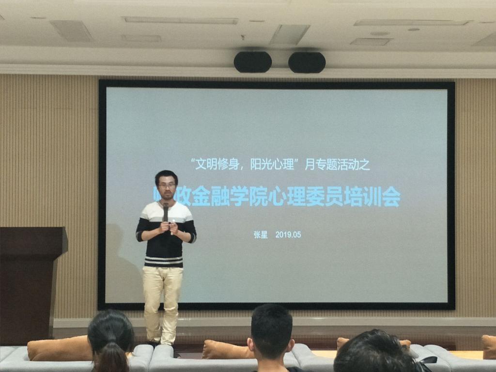 财政beat365在线唯一官网心理工作站成立大会暨第十五届“文明修身·阳光心理”月活动于5月5日下午14:00点在图书馆视听阅览室如期举行。学院党委黄谦副书记出席并宣布院心理工作站成立并对工作站提出具体的工作要求;学团办主任兰丽娟老师带领与会的全体心理委员学习了《beat365在线唯一官网学院心理工作站实施细则》;首任站长分享了校心理工作站的培训精神和要求。活动的重点是邀请校心理健康咨询中心兼职教师张星老师向全体心理委员做了有关“如何做好心理异常察觉、初步预防及报送工作”的培训活动。张老师理论阐述与团体辅导相结合的精彩教学,让全体受训心理委员如醍醐灌顶,提高了大家开展班级心理工作的能力,增强了大家搞好班级心理工作的信心。下午16:00活动圆满结束。