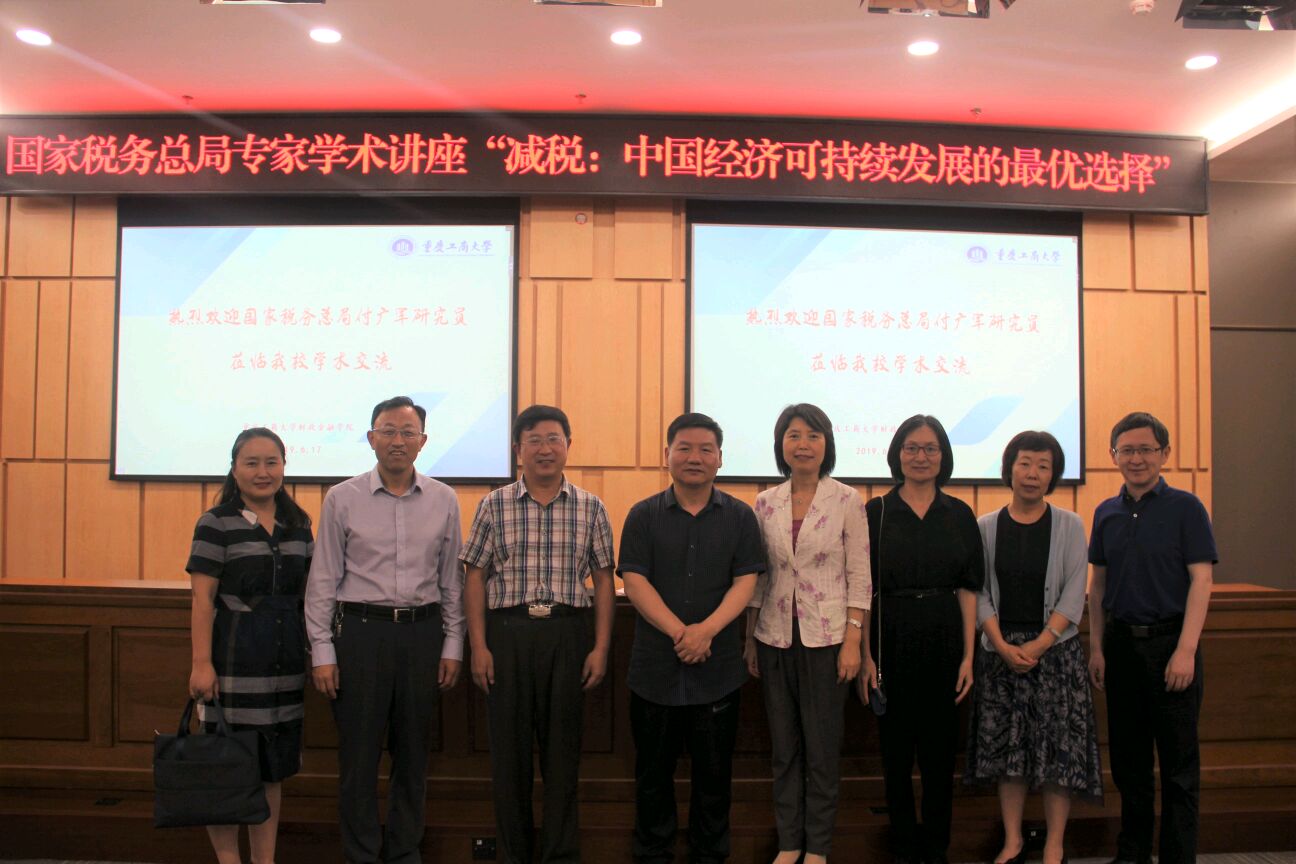 6月17日上午,国家税务总局税收科学研究所资深研究员付广军博士受邀到beat365在线唯一官网进行学术交流,讲座于南岸校区图书馆第一会议室顺利开展。重庆市税务局代表、beat365在线唯一官网财政beat365在线唯一官网财税系的老师和学生参加了本次讲座。