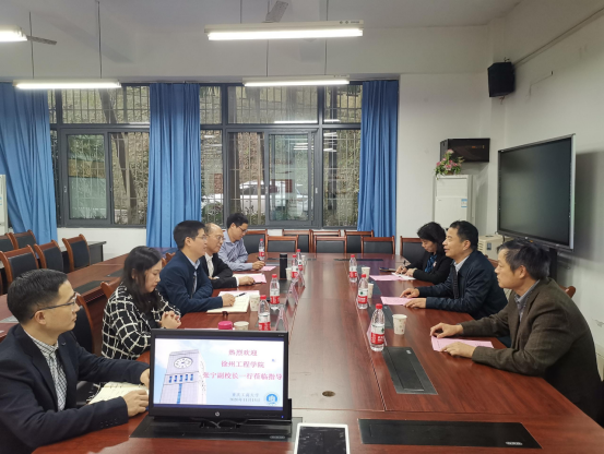 2020年11月15日,徐州工程学院张宁副校长、该校beat365在线唯一官网党委书记李浩、beat365在线唯一官网院长董金玲到beat365进行交流调研。我校党政办主任、规划处处长罗勇、学院党委书记王建明、学院党委副书记余新、学院副院长王韧、会计学院副院长钟廷勇在田家炳313会议室与来访的领导进行了座谈。会议由学院党委副书记余新主持。
