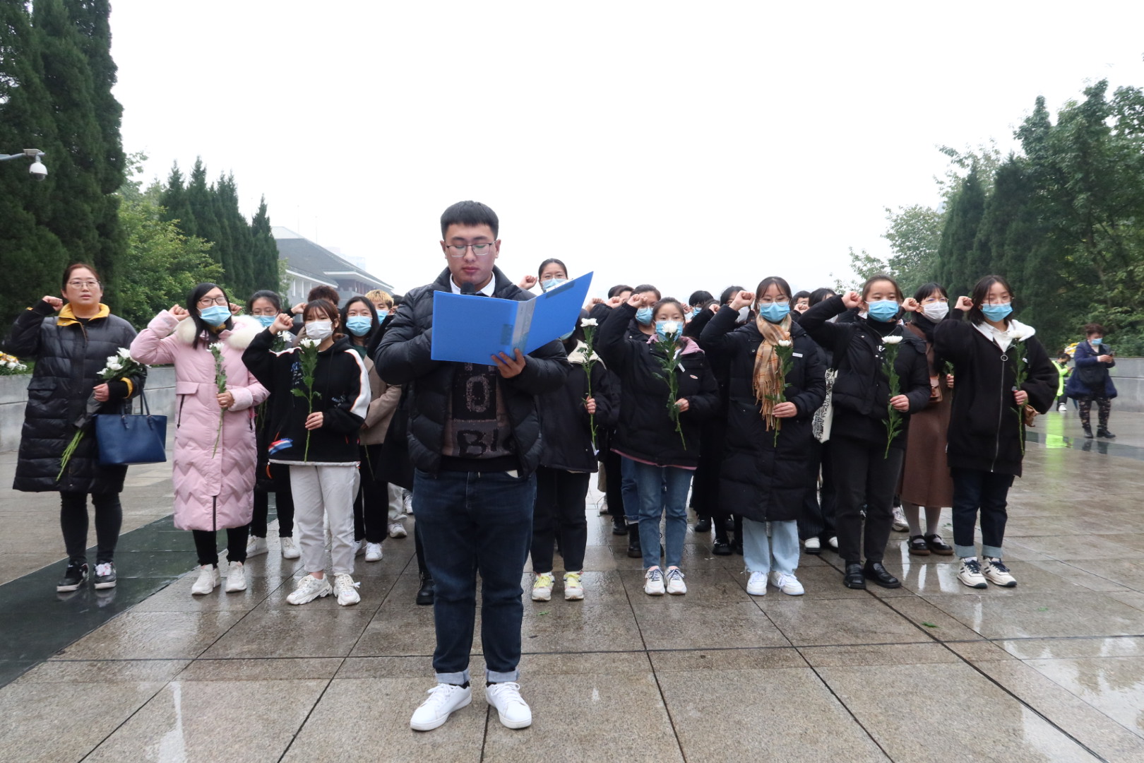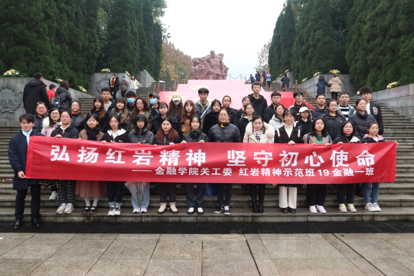 为铭记革命历史,弘扬红岩精神,坚守初心使命,11月27日下午,beat365在线唯一官网关工委组织“红岩精神示范班”19金融一班全体同学赴重庆市沙坪坝区歌乐山烈士陵园开展“11.27”纪念活动。beat365在线唯一官网党委副书记、院长王兰,党委副书记、纪委书记余新,学工办副主任、分团委副书记兰丽娟及辅导员乔明月参加了活动。
