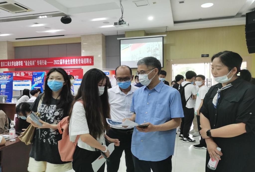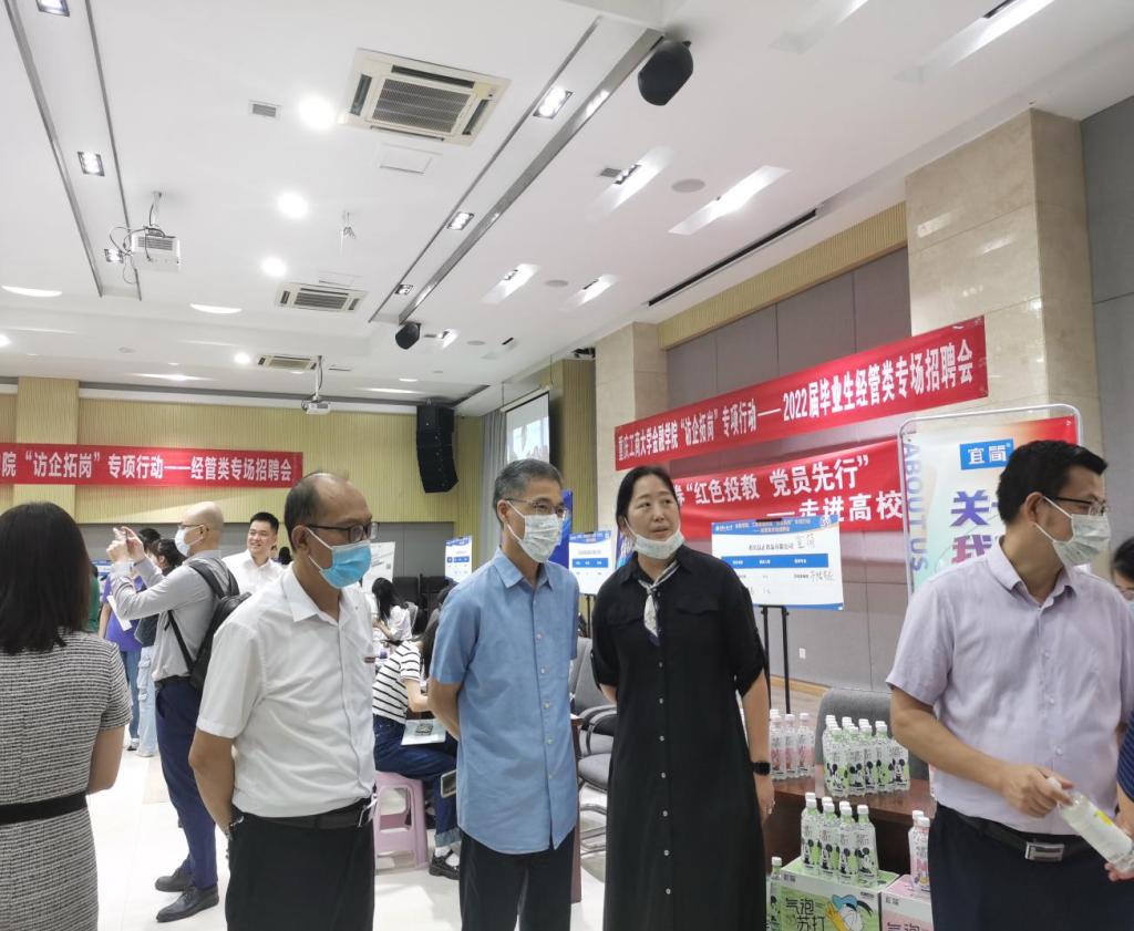 为拓展就业渠道,为毕业生搭建高质量、针对性强的就业平台,2022年6月7日上午,beat365在线唯一官网在田家炳408报告厅举办“访企拓岗”专项行动——2022届毕业生经管类专场招聘会。校党委常委、副校长陈运超、招生就业处处长钟增胜、beat365在线唯一官网全体院领导、学院就业联络员及毕业班辅导员到现场指导学生就业。