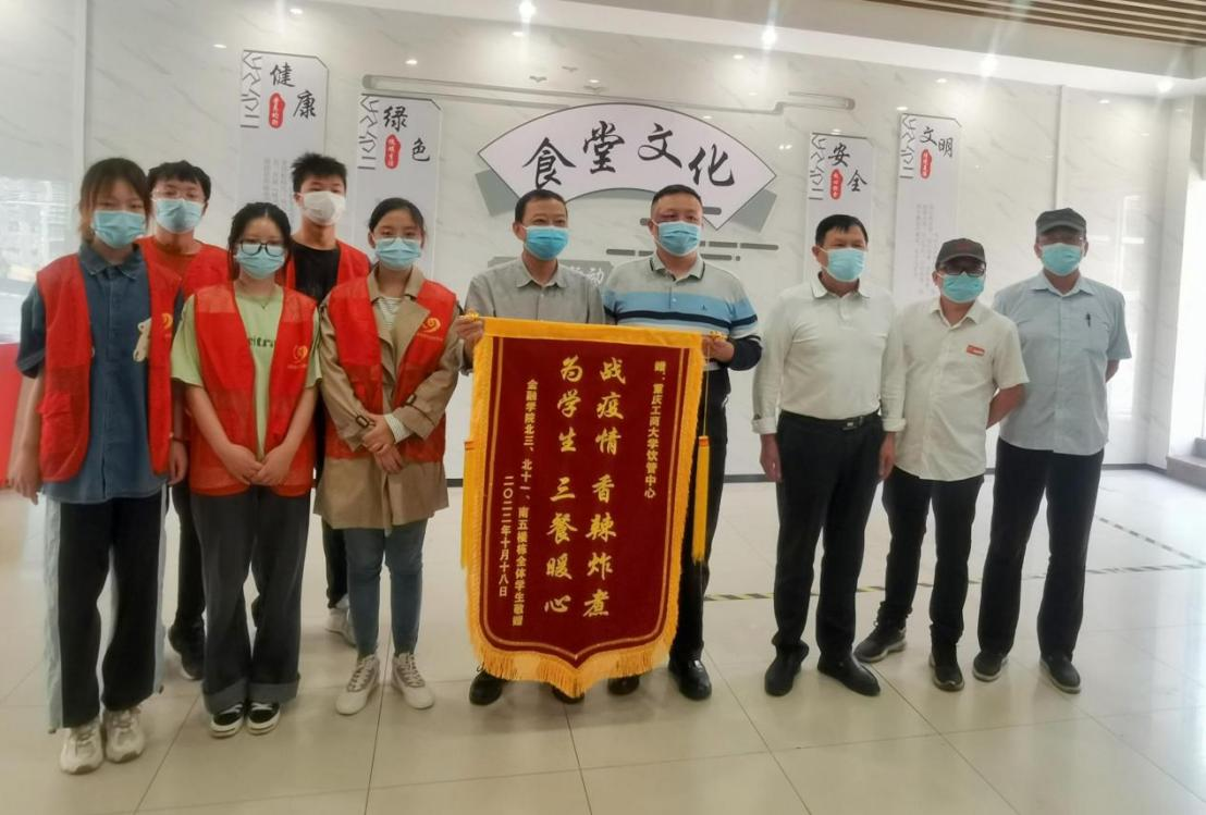 为感谢beat365在线唯一官网饮管中心的全体食堂工作人员在疫情防控期间的辛勤付出,10月21日,beat365在线唯一官网北三、北十一、南五楼管会代表三个楼栋的全体同学向饮管中心赠送锦旗,向全体食堂工作人员表达真挚的感谢,并致以崇高的敬意!