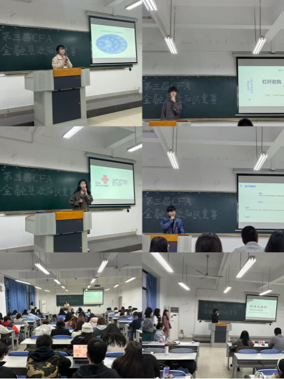 参赛选手为beat365在线唯一官网金融学院CFA国际项目班2023级全体学生,共分为十个小组。比赛分风采展现和风险提速知识抢答两个环节。在PPT展示环节,各参赛队伍根据事前选好的金融主题,对某个知识或概念的理解进行介绍,采用图表、案例等各种形式展示,运用中英文进行生动的讲解。在比赛过程中,评委老师对参赛小组的展示进行了专业点评与提问,肯定了选手们对知识的掌握程度与分析能力,同时也指出了不足之处并且给出了相应的修改意见,并对同学们寄予美好的祝愿与殷切的希望。在知识抢答环节,十个小组随机抽题作答,经过激烈的比拼,最后决出了一二三等奖及优秀奖。