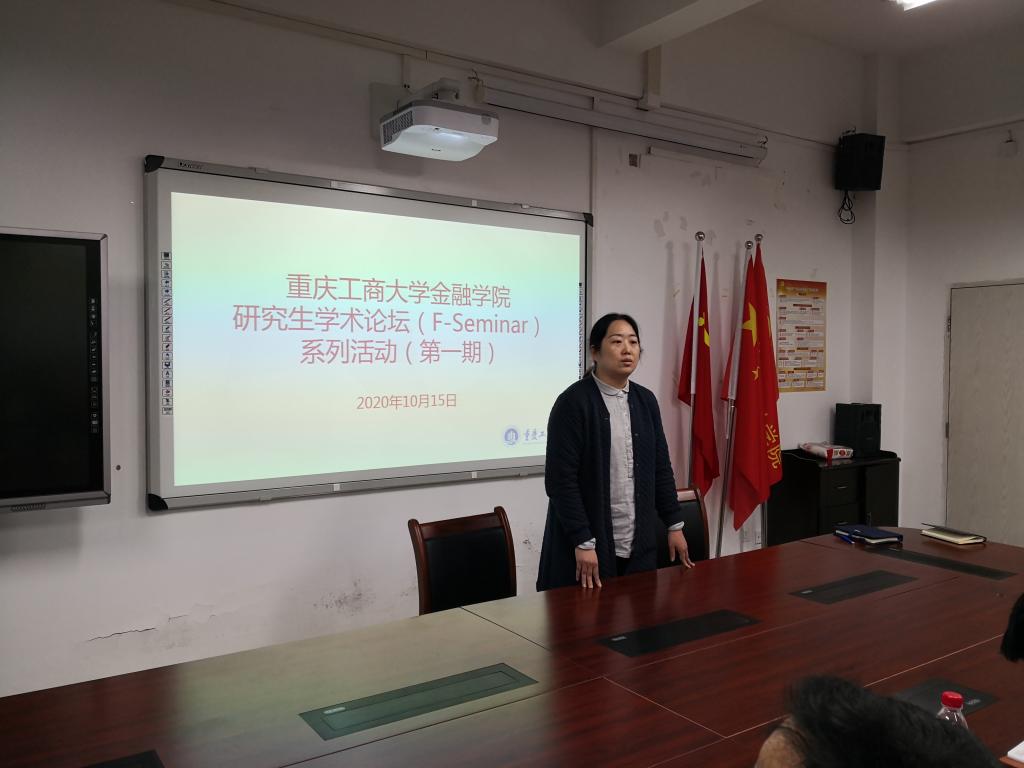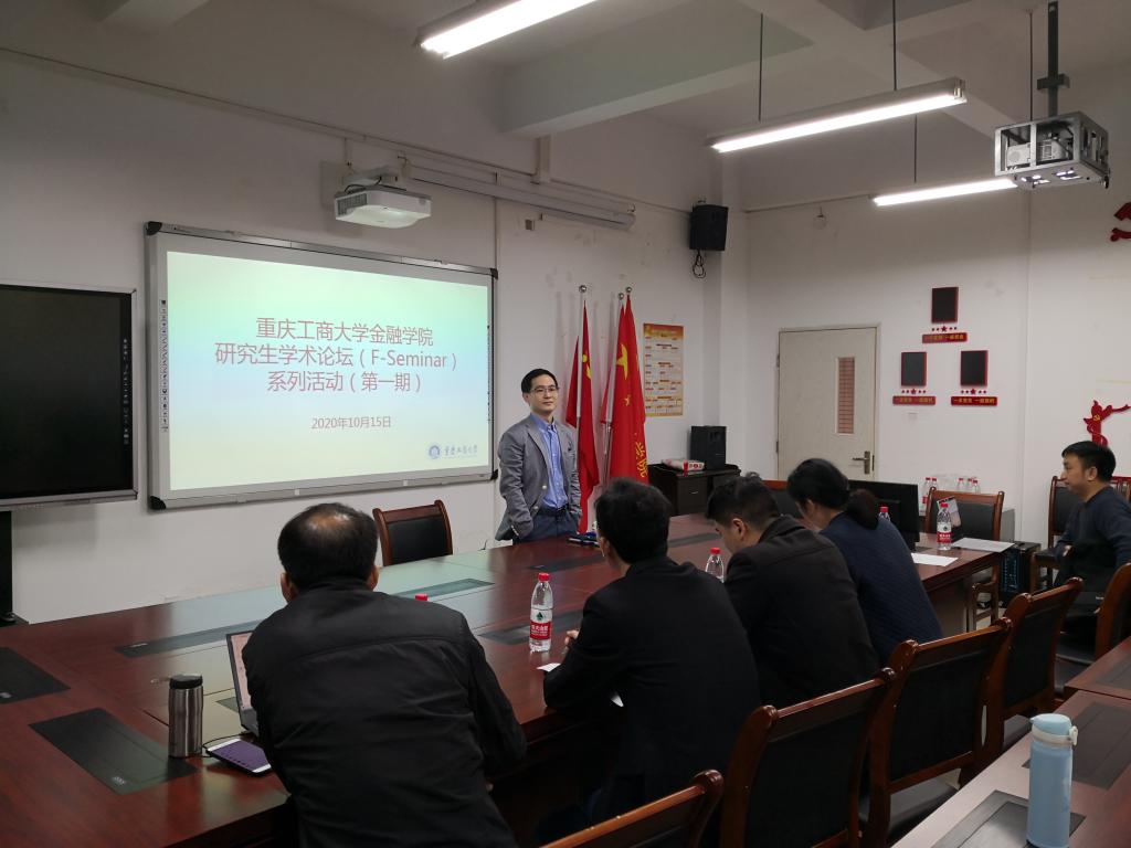 20201015日beat365在线唯一官网研究生学术论坛(F-Seminar)系列活动(第一期)在田家炳313会议室顺利进行,院长王兰,副院长庞楷、王韧,部分硕士生导师和青年博士教师以及2019级、2020级全体金融学硕参加了活动。本次活动由副院长王韧主持。
