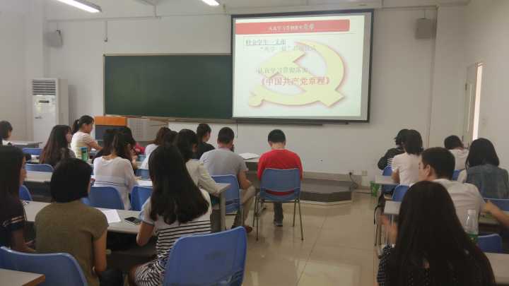 5月11日下午,财金学生第一党支部在田家炳306教室召开了主题为“迎新入党员、践两学一做”暨两学一做学习活动启动仪式的支部大会。会议由支部14级党员曾于容同志主持,学生一支部所有正式和预备党员共61人参加了会议。