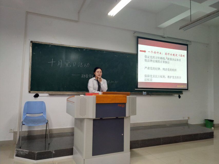 2018年10月11日下午,财政beat365在线唯一官网学生第一党支部在田家炳306召开了10月第一次党日活动。会议由秦杰同志主持,财金学生一支部书记文理以及16、17级共69名入党积极分子列席会议。本次活动的主要内容有:1.学习《中国共产党章程》第七、八章;2.学习《中国共产党纪律处分条例》第1—5章。