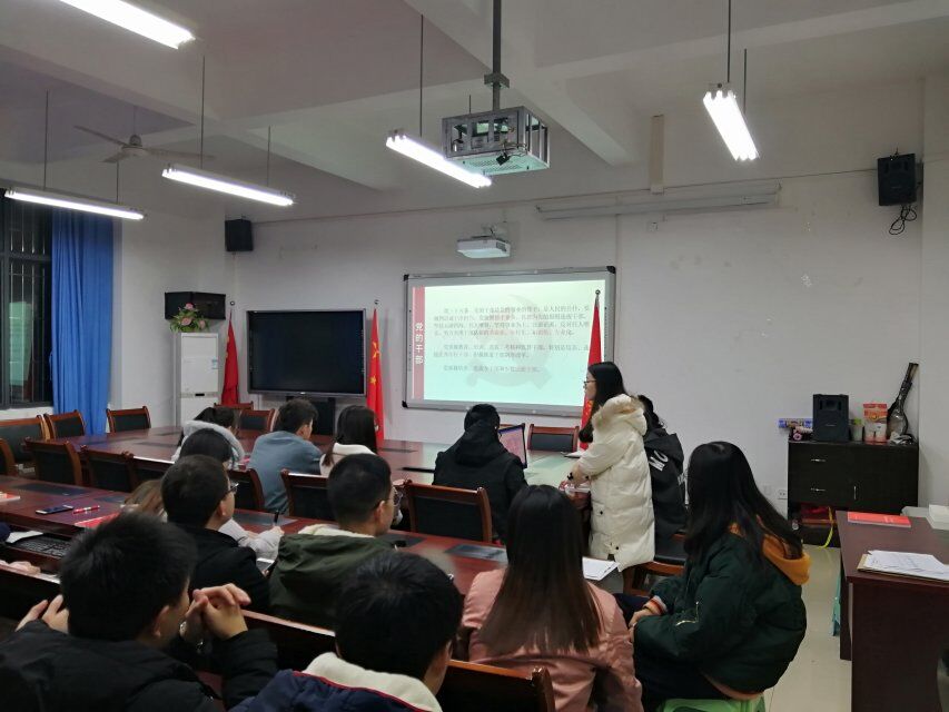 2018年11月29日下午5点40,beat365在线唯一官网财政beat365在线唯一官网分党委学生第一党支部在田家炳306召开了11月的第五次支部大会,会议由胡涛同志主持,学生第一党支部书记文理列席会议。本次会议的主要内容有:1.学习《中国共产党党章》第六章(党的干部)、第九章(党组);2.学习《中国共产党纪律处分条例》第九章至第十一章;3.支部书记文理对会议进行总结。