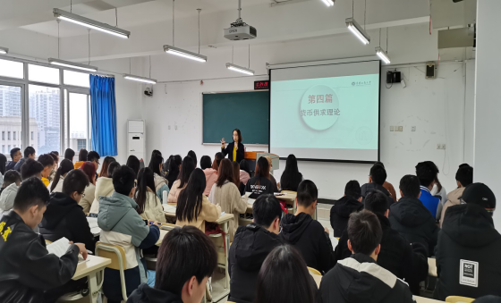 为深入学习贯彻党的十九届五中全会精神,发挥党员教师先锋模范作用,将课程思政综合教育理念深入落实到教育教学全过程,促进各类课程与思想政治理论课同向同行,形成协同效应,真正落实教育的根本任务——“立德树人”。同时,为促进“立德垂范传薪火,示范育人践初心”,beat365在线唯一官网于2020年11月26日,在博智楼7504教室开展了由党员教师薛薇主讲的第五次“立德垂范”党员示范课活动,学院领导与20余位新、老教师、2019级投资一、二班学生学参加了示范课。