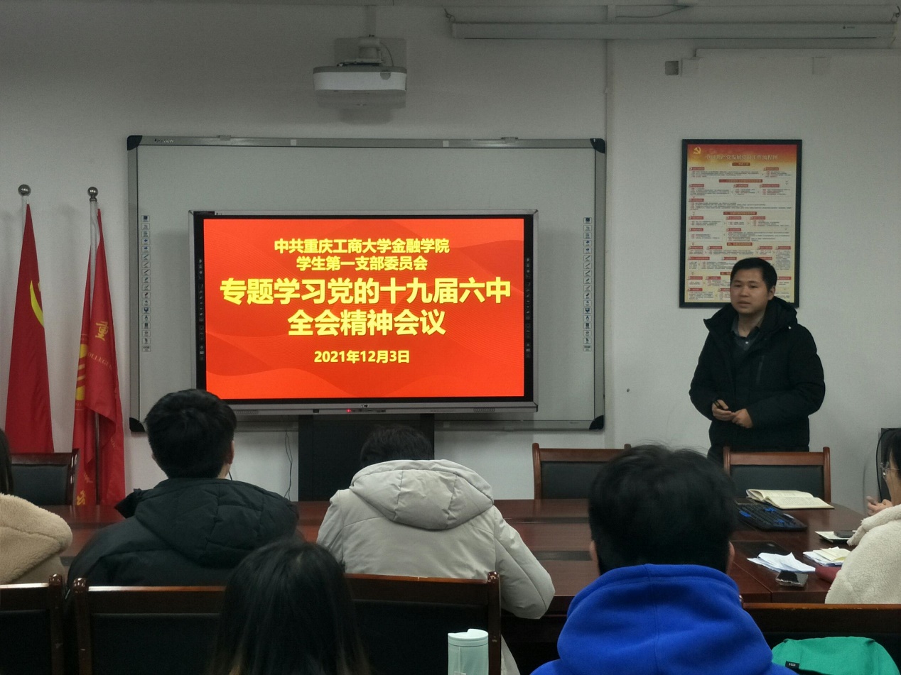 支部书记袁霄再次组织同学们对十九届六中全会精神进行了专题学习。他通过列举十九届六中全会中出现的数字,用“数”说方式对同学们进行了详细简介。其中同学们印象深刻的关键信息,如:2个决议:全会审议通过了《中共中央关于党的百年奋斗重大成就和历史经验的决议》和《关于召开党的第二十次全国代表大会的决议》全会决定中国共产党第二十次全国代表大会于2022年下半年在北京召开;3次飞跃创立泽东思想、形成了中国特色社会主义理论体系、创立习近平新时代中国特色社会主义思想,这是马克思主义中国化的三次飞跃。4个伟大成就一百年来党领导人民浴血奋战、百折不挠,创造了新民主主义革命的伟大成就;自力更生、发愤图强创造了社会主义革命和建设的伟大成就;解放思想、锐意进取创造了改革开放和社会主义现代化建设的伟大成就;自信自强、守正创新创造了新时代中国特色社会主义的伟大成就等内容让支部同志对十九届六中全会精神有了更深入地了解。