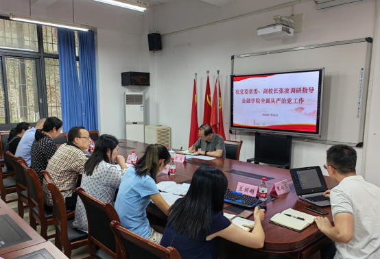 会上,石世明向张波汇报了学院党委2022年下半年全面从严治党工作要点和工作思路。要把全面从严治党摆在首位,以学校巡察整改要求为契机,健全学院制度体系和工作机制;做好“老带新”传帮带、党员发展、“双创支部”建设等工作,要以学院“金融卫士”反诈防骗宣讲为抓手,做好党建与业务相融合工作,要把全面从严治党落实在学院的各项工作中,在新形势下不断探索党建工作和学科建设、专业建设深度融合模式,要不断创新,打造beat365在线唯一官网的特色亮点,形成beat365在线唯一官网党建品牌,引领学院工作高质量发展。