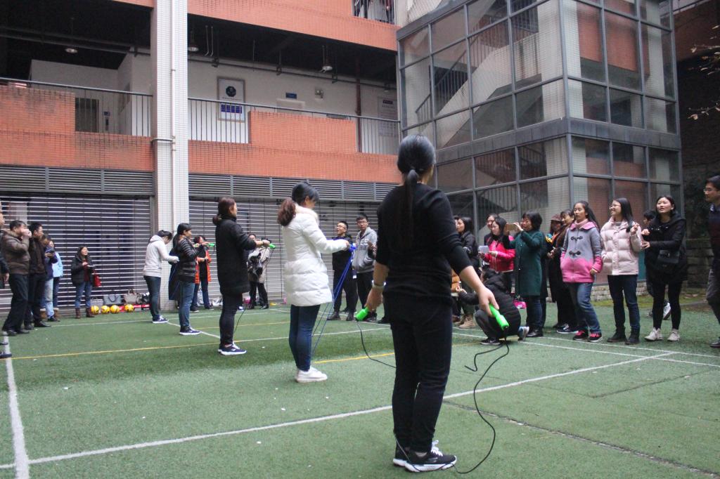 本次运动会共设置了两个项目,单人跳绳与定点足球射门。在单人跳绳环节,5组代表队共派出五位老师进行一分钟跳绳,看似简单的跳绳项目却也难倒了不少老师,大家集中精力,认真比拼,在紧张而激烈的气氛中,办公室代表队取得了胜利。在定点足球射门项目中,各代表队派出5名教师,每名教师有三个定点射门的机会,为了射门成功,每个队员都在找窍门、找角度, 或快步直踢,或慢速定点踢,最后财税代表队、金工保险代表队、投资代表队并列第一名。经过两个项目的比拼,最终将成绩加总,办公室代表队获得一等奖,财税代表队、金工保险代表队和投资代表队获得二等奖,金融代表队获得三等奖。
