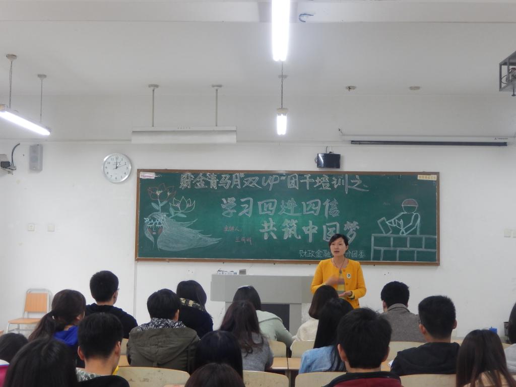 为进一步学习贯彻习近平总书记系列重要讲话精神,积极开展“四进四信”活动,财政beat365在线唯一官网于4月7日中午1点在07217教室开展以“学习四进四信,共筑中国梦”为主题的财金青马月“双up”团干培训会,此次培训会在同学们热情的讨论中圆满举行,财金学院分团委书记兰丽娟以及分团委学生会各部门部长参与本次活动。