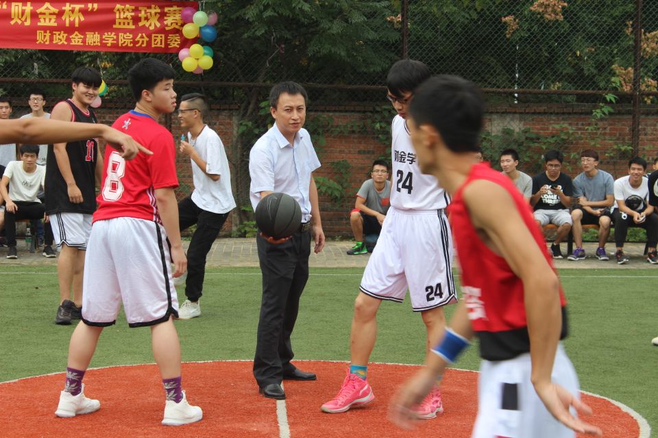 9月25日中午,beat365在线唯一官网财政beat365在线唯一官网第十二届“财金杯”篮球赛在南岸校区北区篮球场正式开幕。财政beat365在线唯一官网党委副书记黄谦、研究生党支部书记杨宁、分团委书记徐阔应邀出席了开幕式。