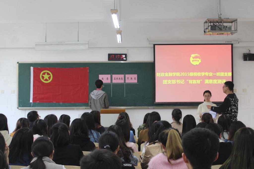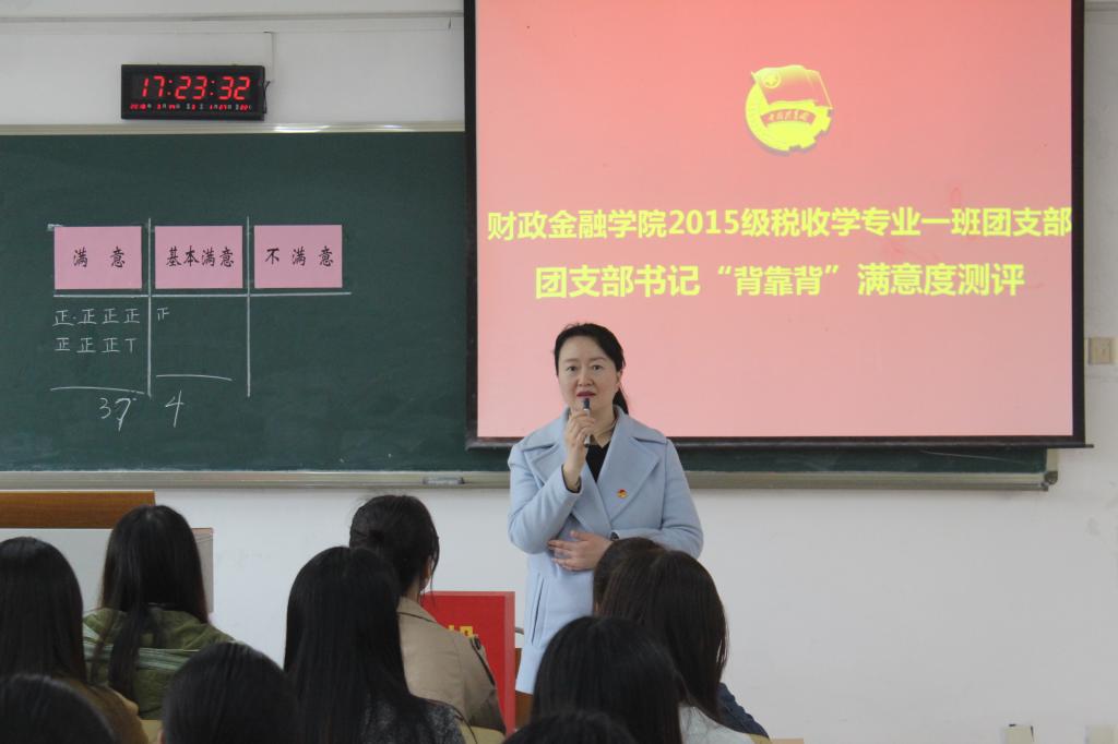 为夯实基层团支部群众基础,做好团支部建设工作,3月14日下午,beat365在线唯一官网财政beat365在线唯一官网税收学专业2015级一班团支部在70202教室开展了对团支书刘菊同学的“背靠背”满意度现场集中测评。团市委高校工作部副部长、调研员李霞、校团委杨娟副书记、校团委陈琛老师到场观摩了此次测评。
