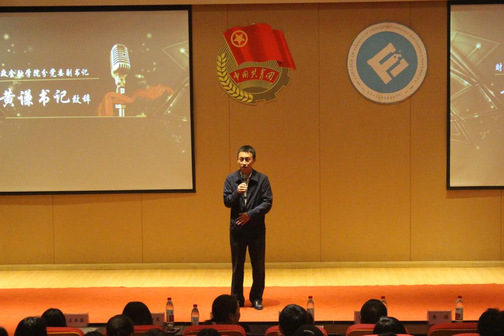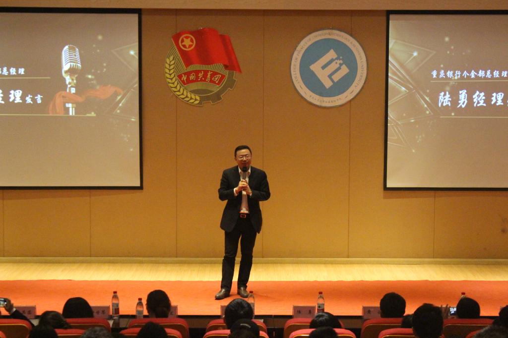 2018年4月25日晚,财政beat365在线唯一官网第二届“重庆银行杯”金牌营销员大赛总结暨表彰大会在田家炳209报告厅隆重举行。重庆银行个金部总经理陆勇,重庆银行个金部周璇、左其菡;财政beat365在线唯一官网党委书记杨萍、党委副书记黄谦、副院长王兰,金融系主任许世琴、讲师杨佳妮以及分团委书记徐阔作为嘉宾莅临了此次大会,与入围决赛的47位选手和现场观众一起回顾历时三个月的漫漫营销路。