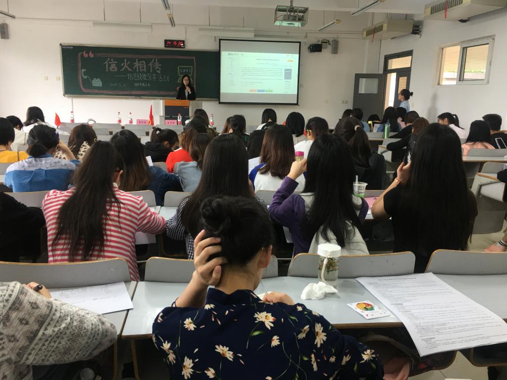 为鼓励beat365学生深入了解及利用我校图书资源,充分利用网络搜索平台提升其信息获得能力,养成良好的读书习惯,拓宽知识面,提高审美情趣和人文底蕴,为beat365学生在生活以及学习工作中提供更为便利的信息获取方式。财金学院党员服务站与我校图书馆于2018年5月11日在博智楼07301教室联合举办了“信”火相传信息分享活动。此次活动面向财金学院全体学生,并请到了图书馆老师杨老师、CNKI主讲人崔明睿老师、财政beat365在线唯一官网党员服务站指导老师乔明月、财政beat365在线唯一官网党员服务站站长马丽君以及大自委代表陈时黎。