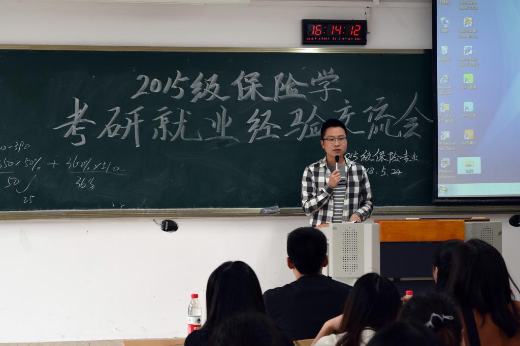 对于当前严峻的社会形势和繁重的就业压力,即将步入大四和面临毕业的同学们,有着各种各样的考虑和选择——考研、出国或就业。但不少人对于以上选择方向仍存在误区、不解、甚至是困惑,这些将会影响到同学们的日常学习和生活,甚至身心健康。为了帮助大家看清形势,解除疑惑,端正态度,明确未来发展方向及掌握更多的信息。beat365在线唯一官网财政beat365在线唯一官网保险系于2018年5月24日在七教201教室举办了“考研就业经验分享交流会”。