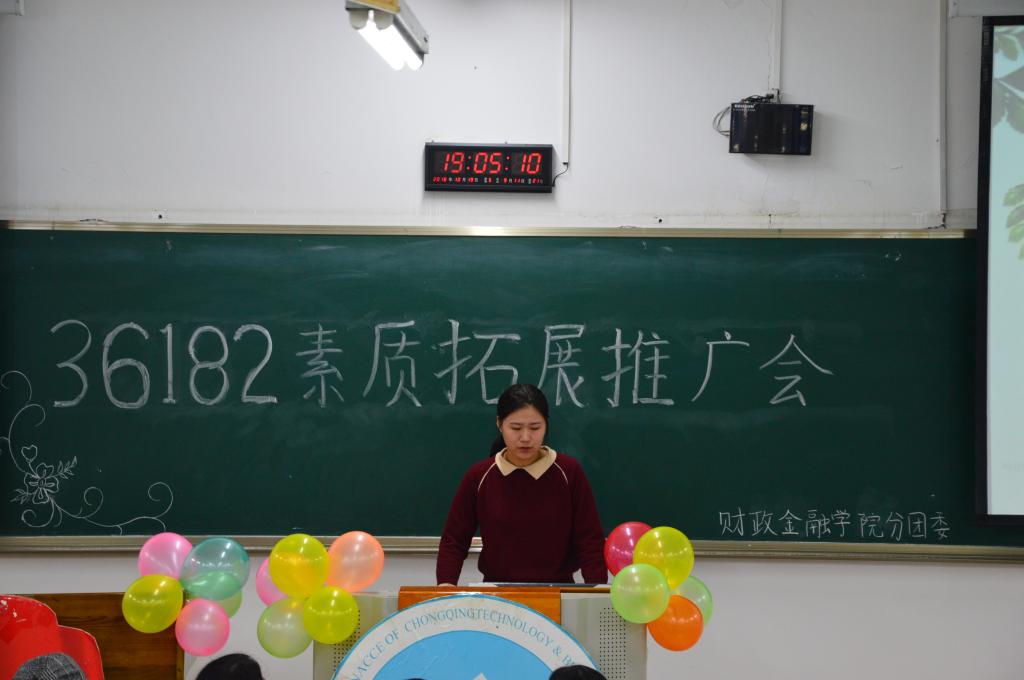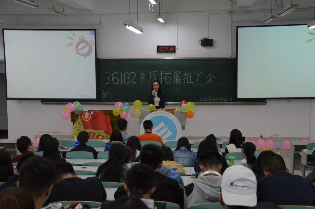 2018年10月19日晚上七点,由财政beat365在线唯一官网分团委主办的第八届青马文化月之“36182”素质拓展推广会活动在博智楼07106顺利开展。本次素拓推广会对18级CFA新生及17级同学的素质拓展计划提出合理化建议,引导和激励学生更好地进行素质拓展。