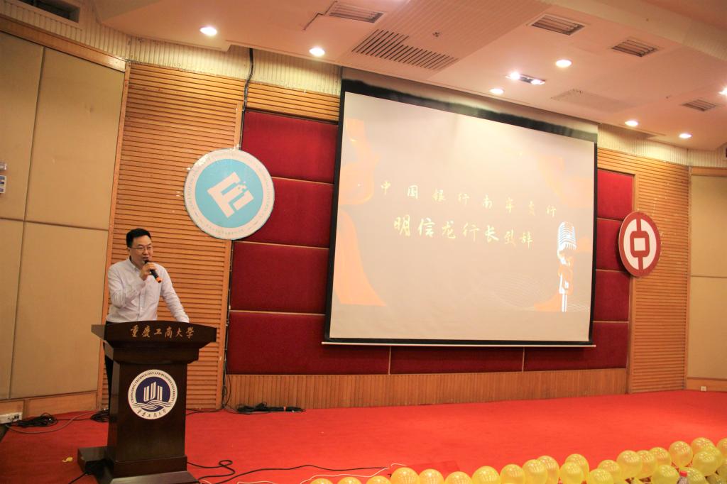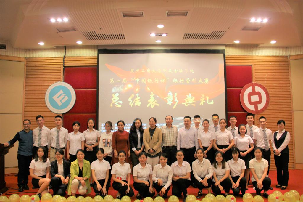 2018年9月14日,为促进理论与实践的结合,弘扬财金文化,彰显财金特色,财政beat365在线唯一官网第一届“中国银行杯”银行营销大赛决赛暨总结表彰大会于博智楼7200报告厅拉开帷幕,中国银行重庆南岸支行个人金融部副主任谭平主任,中国银行重庆南岸支行公司部副主任李静怡主任,中国银行重庆南岸支行客户经理周牧小村经理,财政beat365在线唯一官网金融系系主任许世琴老师,金融系教师唐晓玲老师担任本次决赛的评委,中国银行南岸支行行长明信龙行长、中国银行南岸支行副行长王霜行长、中国银行南岸支行个人金融部主任谢娅莉主任、财政beat365在线唯一官网院长刁孝华教授、财政beat365在线唯一官网副院长王兰教授出席了赛事的总结表彰典礼。