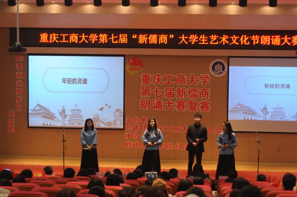 本次比赛参赛选手以团队朗诵的形式进行表演。比赛以来自通识学院的《祖国,以梦为马》拉开了帷幕。选手们激情盈溢,语言流畅,朗诵风格也各不相同。来自各学院的29支队伍的倾力表演让台下观众产生了强烈的情感共鸣,也赢得了大家的赞叹与掌声。最终,商务策划学院的《请铭记,雾重庆》、经济学院的《给小平同志的100首诗》、管理学院的《我的南方和北方》、财政beat365在线唯一官网的《船长礼赞》等12个节目脱颖而出,成功晋级决赛。
