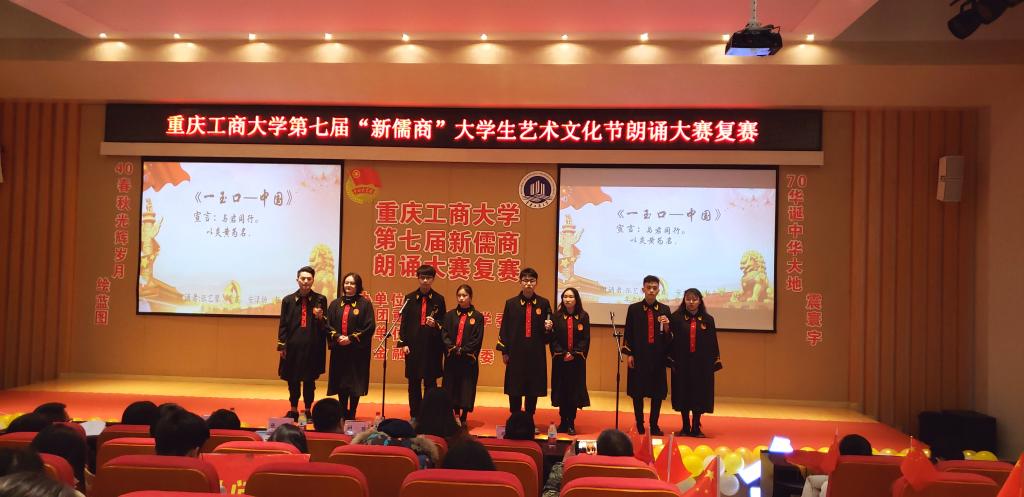 拳拳赤子心,歌颂爱国情。为庆祝祖国七十华诞,歌颂改革开放四十周年伟大成就,2018年12月16日晚18:00,beat365在线唯一官网第七届“新儒商”大学生艺术文化节朗诵大赛复赛于南岸校区田家炳书院209报告厅圆满举行。本次大赛由共青团beat365在线唯一官网委员会主办,财政beat365在线唯一官网分团委学生会承办。复赛现场气氛热烈,来自各学院的选手与观众期待着大赛的完美演绎。