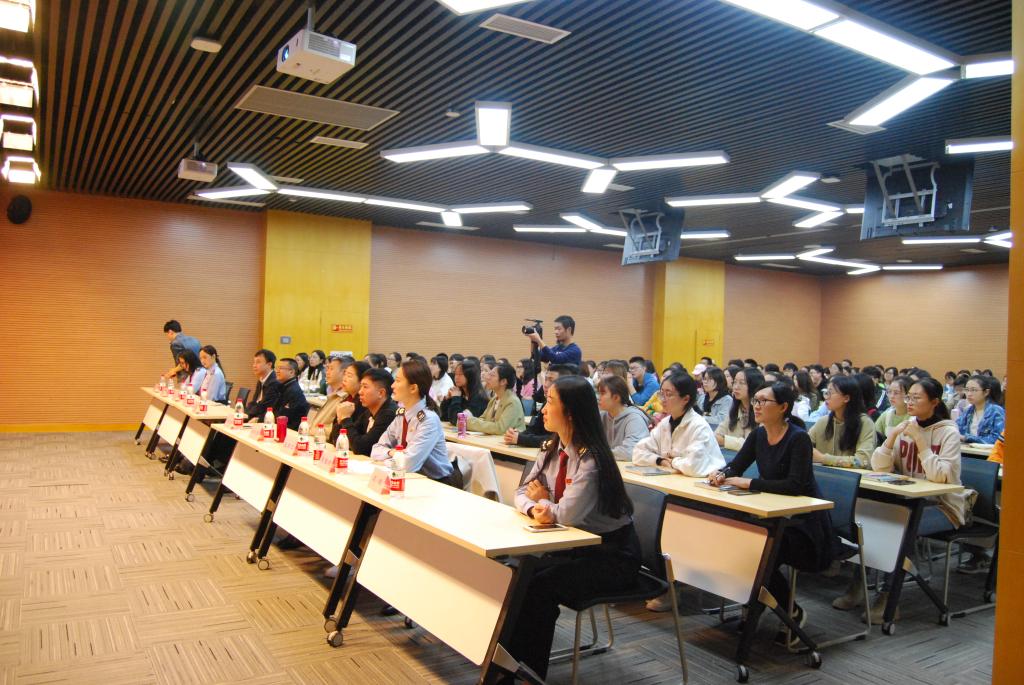 宣讲会开始后,韩健老师上台致辞。他引用孟子的话“徒善不足以为政,徒法不能以自行”,教导我们不仅要学习税法知识,更重要的是要培养税法思维,让税法思维融入到生活和工作中。随后重庆税收普法宣讲团成员、涪陵区税务局马晓敏老师和重庆税收普法宣讲团成员、重庆市第七稽查局何冰翊老师分别向同学们介绍了关于发票的“套路”和税务稽查的“前世今生”。何冰翊老师称: 纳税道路千万条,诚信纳税第一条;涉税行为不规范,亲人朋友两行泪。劝解同学们要诚信纳税。劳动模范、巴渝工匠、国家高级刺绣师、重庆税收志愿者单大琼老师为我们分享了她自己与税收有关的创业故事。我们的学姐、beat365在线唯一官网优秀毕业生、南岸区税务局的宋雅洁也来到现场,与我们分享她在税务系统工作的感受。宣讲会在程羿老师致辞中落下帷幕。