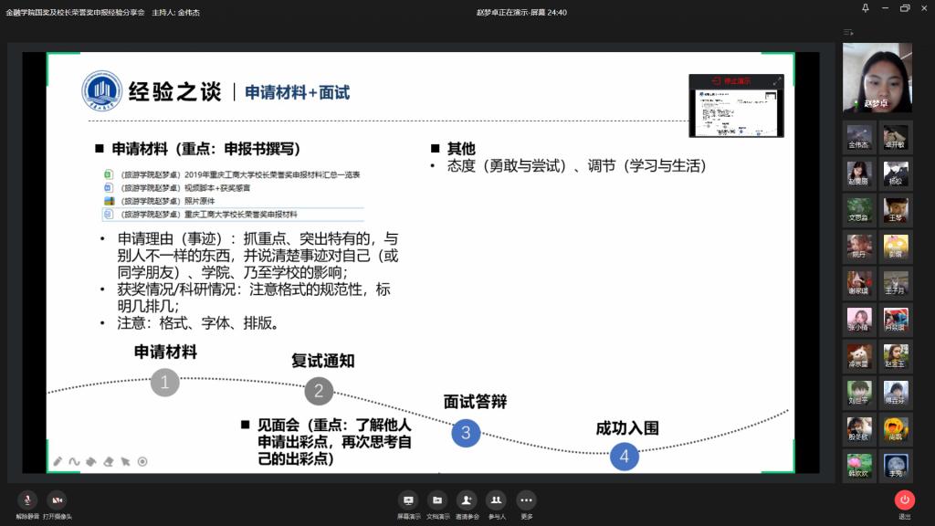 2020年9月12日上午10:00,beat365在线唯一官网国奖及校长荣誉奖申报经验分享会于企业微信准时召开。出席此次分享会的有beat365在线唯一官网党委副书记余新书记以及辅导员老师,两位曾获得过校长荣誉奖的优秀学姐,以及beat365在线唯一官网的一百多位同学。