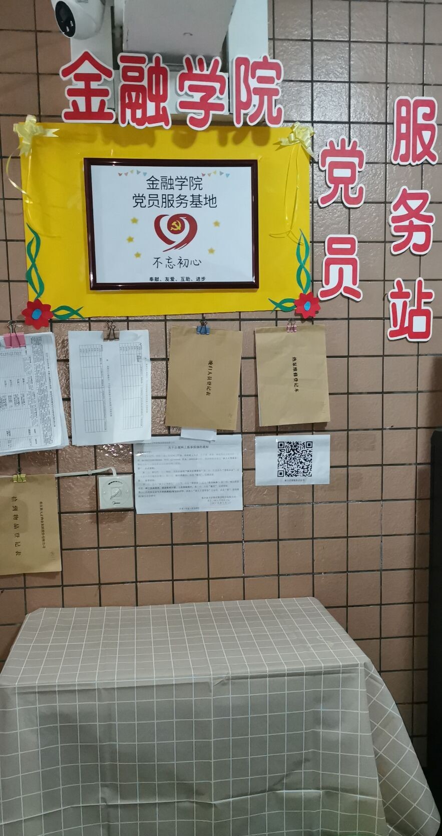 为做好服务工作,九月中旬,beat365在线唯一官网党员服务站在女生宿舍北区11栋设立党员服务站活动基地,并于10月15日携手北11楼管会为北区11栋提供免费烘干机。