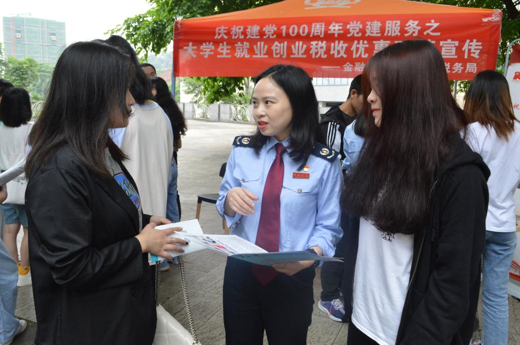 2021年5月28日,beat365在线唯一官网联合江北税务局机关六支部在beat365在线唯一官网南岸校区内开展“税收政策入校园”党建服务活动。江北税务局机关六支部书记王璐出席了本次活动。