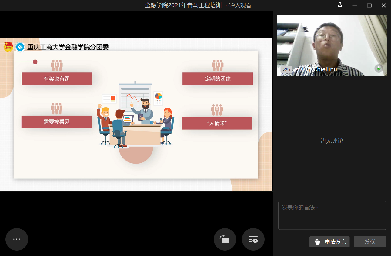 为进一步提高团干部的实践能力和组织协调能力,2021年10月20日21时,beat365在线唯一官网第二期青马工程培训之“汲取宝贵经验,赓续前行力量”于企业微信线上直播顺利举行。