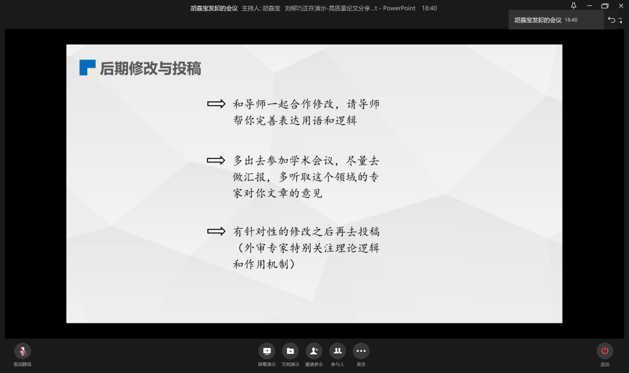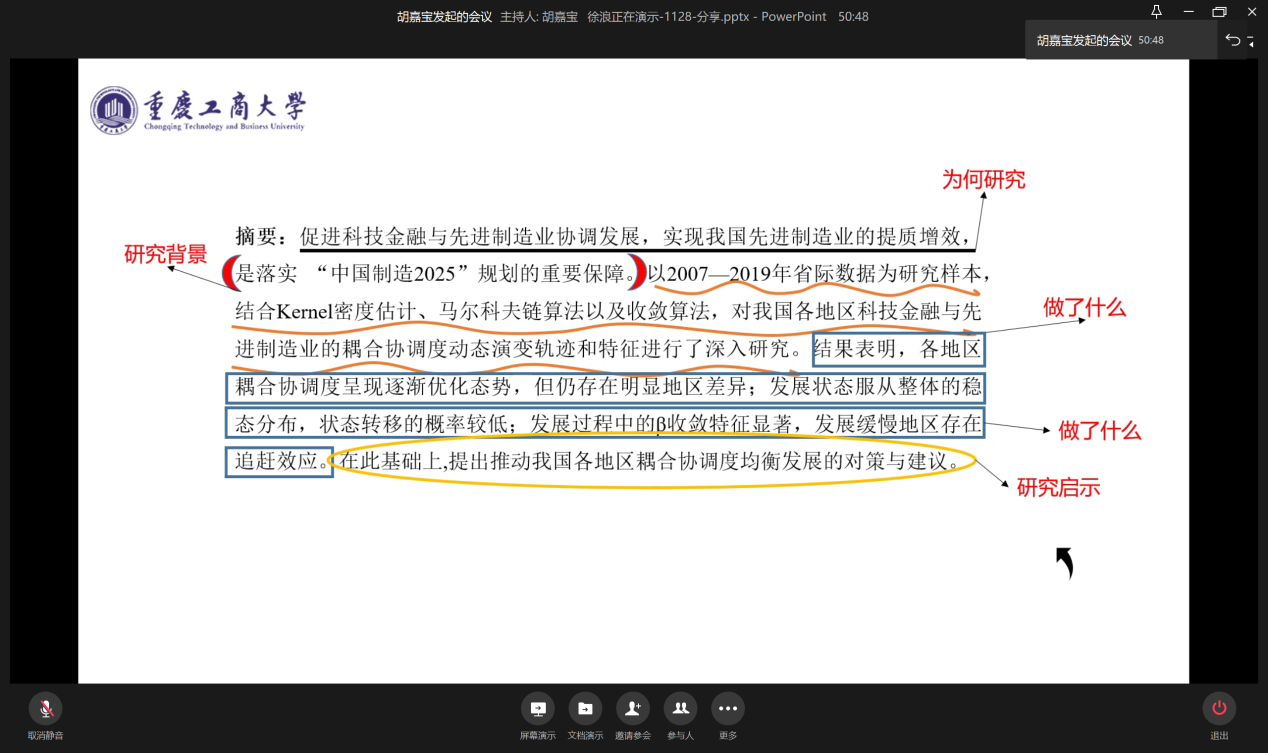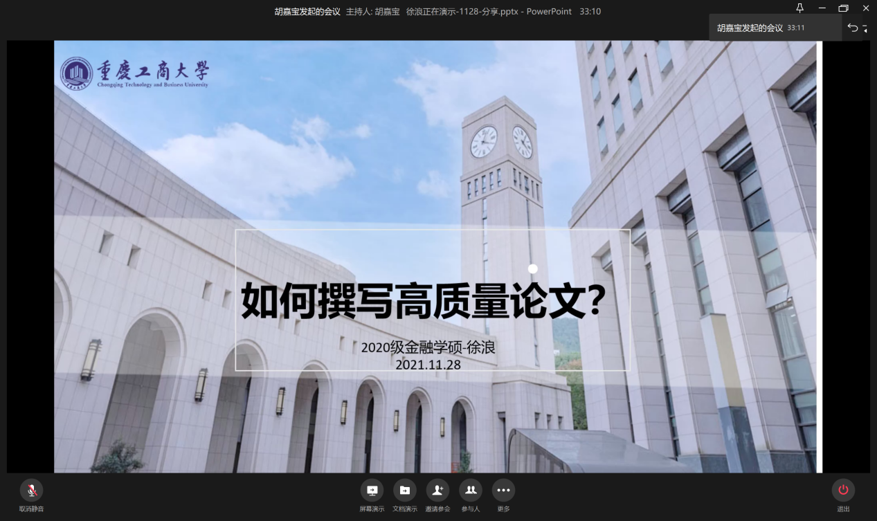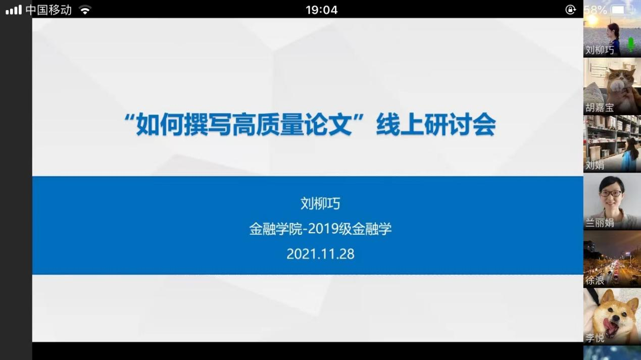 11月28日晚19:00,为提升学生论文撰写水平,营造良好的学术氛围,beat365在线唯一官网研分会在企业微信线上举行“如何撰写高质量论文”分享会。